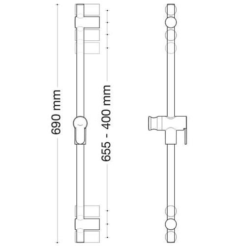 - práctico: longitud entre soportes a pared regulable en la instalación: de 400 a 655 mm.