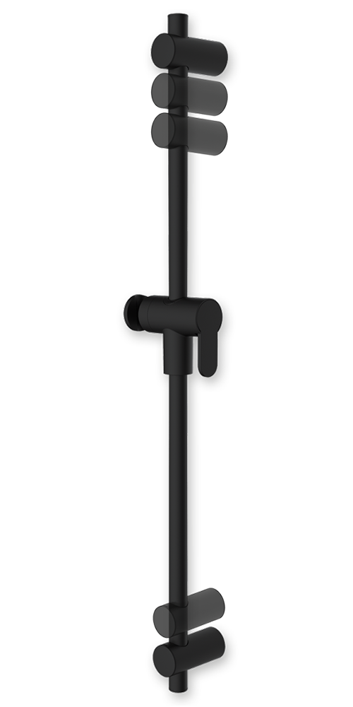 barra deslizante regulable para ducha adapt black, con distancia variable entre ambas fijaciones que permite utilizar los agujeros existentes en la pared.