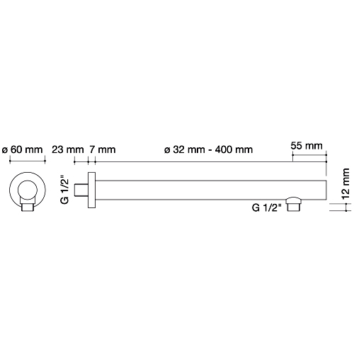 - Ø32 mm - 400 mm - 1/2".