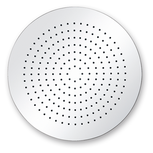 difusor ducha slim Ø252mm color cromo con salidas de agua grises, fabricado en latón.