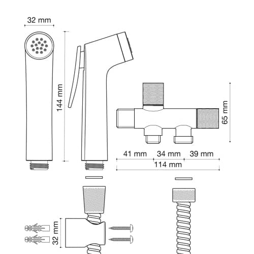 conjunto ducha-bidé totem con llave de escuadra doble, mango de un jet con pulsador, soporte y flexible reforzado. Lea atentamente las instrucciones de uso y funcionamiento.