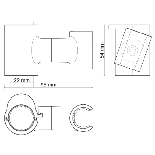 soporte de mango de ducha con tuerca cónica para barra deslizante de diámetro Ø22 mm ratio, sin necesidad de desmontar las fijaciones de la barra deslizante.
