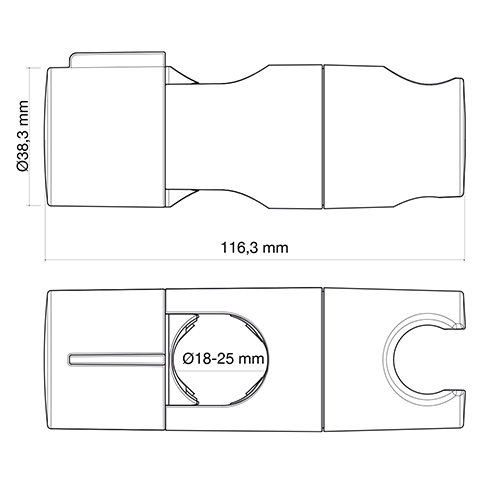 soporte de mango de ducha con tuerca cónica para barra deslizante de diámetros Ø18-25mm practic, sin necesidad de desmontar las fijaciones de la barra deslizante.