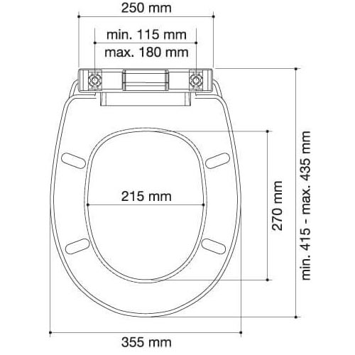 tapa wc noah con bisagra universal (amplio rango de ajuste), fabricada en termoplast.