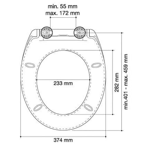 tapa wc sara con softclose (caída amortiguada), topfixing (fijación superior), comfortclean (extraíble con un botón para limpieza, fabricada en termoplast.