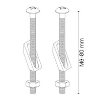 recambio juego de tornillos M6-80mm, placas basculantes y tuercas de fijación para tapa wc topfixing, fabricado en acero inoxidable.