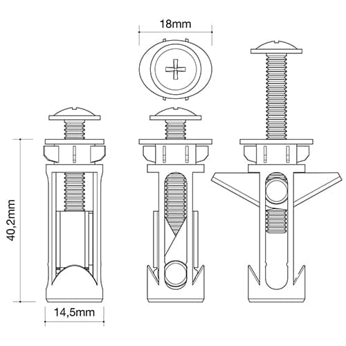 juego de tacos inteligentes y tornillos para la fijación de la tapa wc topfixing+ que permiten montar y desmontar infinidad de veces.