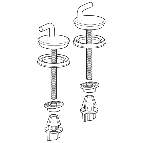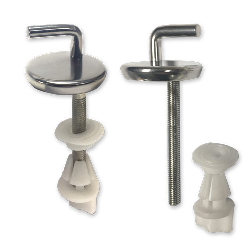recambio juego de fijación para tapa wc mila, fabricado en acero inoxidable y termoplast.
